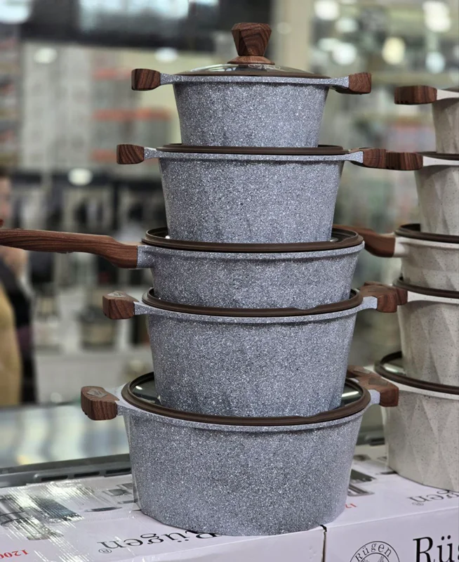 قابلمه روگن مدل RU-7010 این سرویس قابلمه از پوشش دو طرف گرانیت تشکیل شده حتی دور درهاش واشر کارشده برای این که زنگ یا تغییر رنگ ندهد.